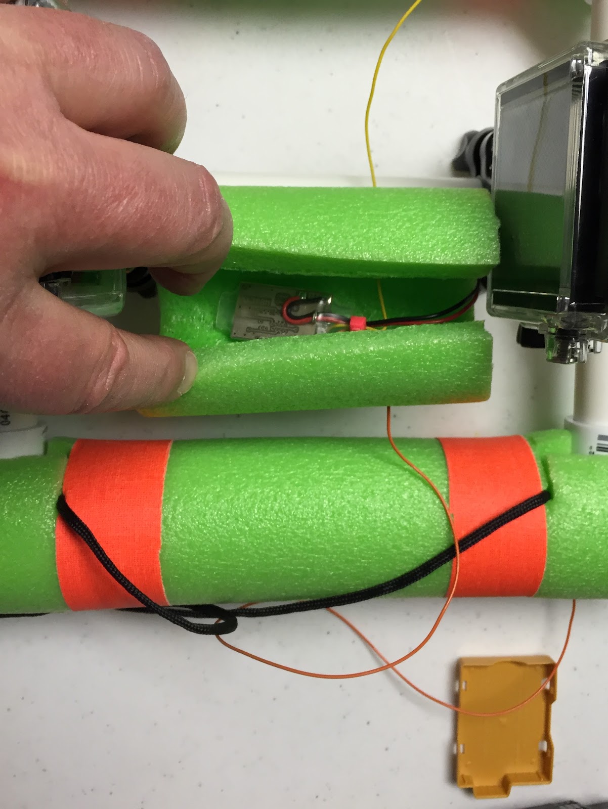 The CW beacon has a new home, tucked inside the foam (pool noodle) on the GoPro camera payload.